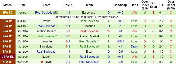+ Thống kê 10 trận gần nhất của Sociedad