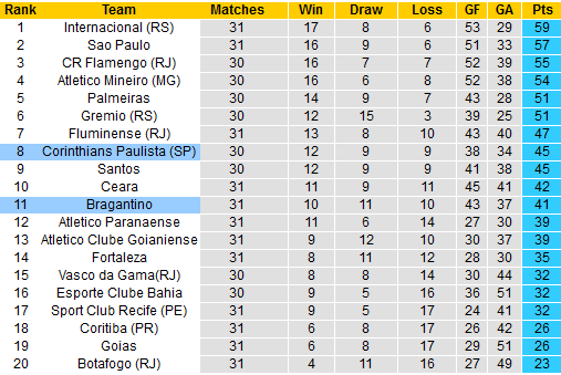 Mùa giải năm nay đang đi đến hồi kết tại Serie A của Brazil. Mục tiêu của Corinthianss và Bragantino đều khá rõ ràng khi tất cả đều hướng đến tấm vé dự sân chơi châu lục.