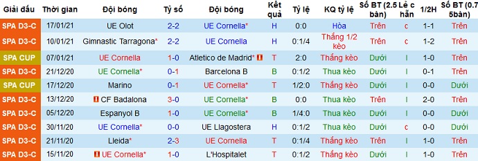 + Thống kê 10 trận gần nhất của Cornellà