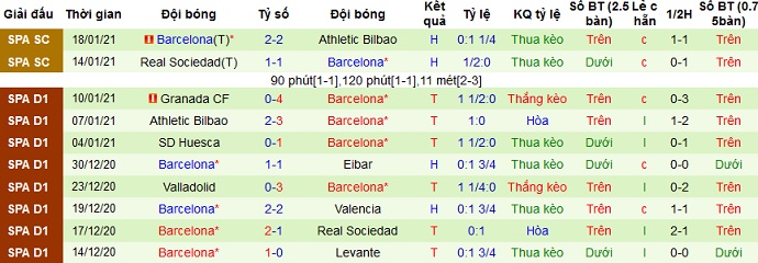 + Thống kê 10 trận gần nhất của Barcelona