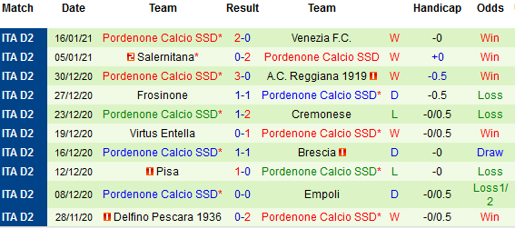 + Thống kê 10 trận gần nhất của Pordenone