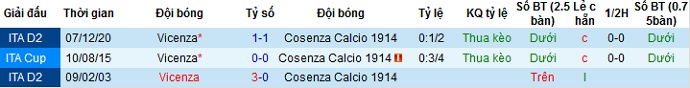 + Lịch sử đối đầu Cosenza vs Vicenza