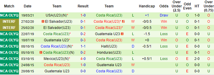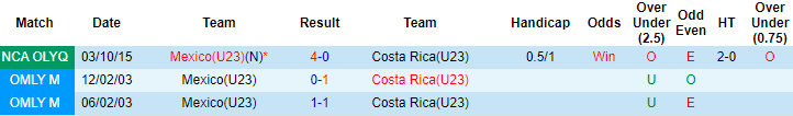 Đối đầu Mexico U23 trong quá khứ, Costa Rica U23 bất bại 2 trên 3 trận. Dẫu vậy, cả 2 trận không thua của Costa Rica U23 trước Mexico U23 đã diễn ra cách đây tới 18 năm. Lần gần nhất chạm trán nhau, Mexico U23 dễ dàng vùi dập Costa Rica U23 với tỷ số 4-0.