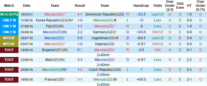 + Thống kê 10 trận gần nhất của Mexico U23