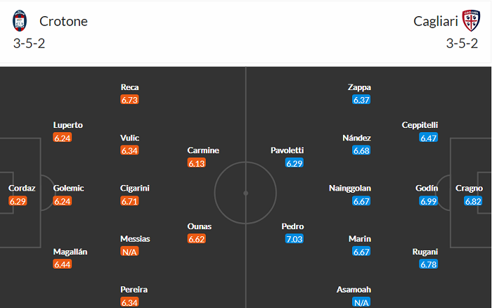 Đội hình dự kiến Crotone vs Cagliari