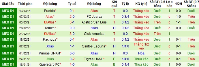 + Thống kê 10 trận gần nhất của Club Atlas