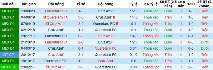 Tỷ lệ kèo Cruz Azul vs Querétaro