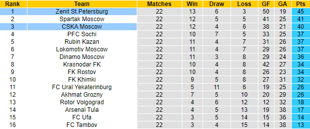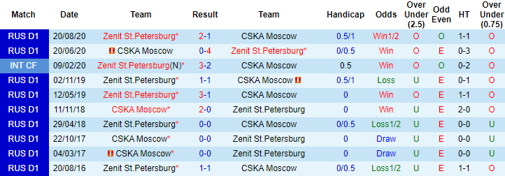 CSKA Moscow toàn thua cả 3 trận đối đầu Zenit gần đây, bị đối thủ chọc thủng lưới 9 lần sau 270 phút tranh tài. Trên bảng xếp hạng giải VĐQG Nga lúc này, CSKA Moscow đang xếp ở vị trí thứ 3 với 40 điểm sau 22 trận, trong khi với số trận tương tự, Zenit đã giành 45 điểm để củng cố vững chắc vị trí số 1. Với những thông tin như vậy, Zenit hoàn toàn xứng đáng được đánh giá cao hơn đối thủ ở trận đối đầu sắp tới, dù phải làm khách.