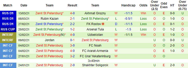 + Thống kê 10 trận gần nhất của Zenit
