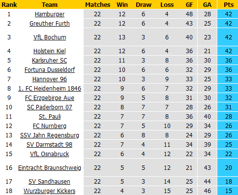 Được kỳ vọng sẽ là đối thủ đáng gờm trong cuộc đua thăng hạng nhưng Darmstadt đang thể hiện hình ảnh rất đáng lo ngại sau hơn nửa chặng đường. Đội chủ nhà chỉ còn hơn vị trí phải đá play-offs trụ hạng 5 điểm là chi tiết cho thấy họ đã sa sút quá nhiều ở thời điểm hiện tại.