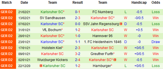 + Thống kê 10 trận gần nhất của Karlsruher