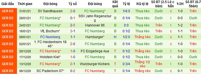 + Thống kê 10 trận gần nhất của Nürnberg