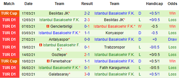 + Thống kê 10 trận gần nhất của Istanbul Basaksehir