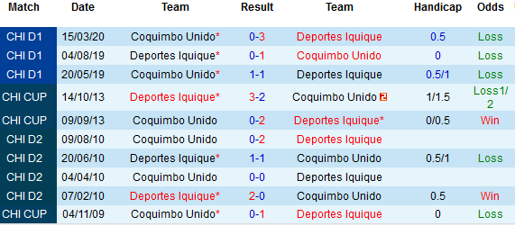 + Lịch sử đối đầu Deportes Iquique vs Coquimbo Unido