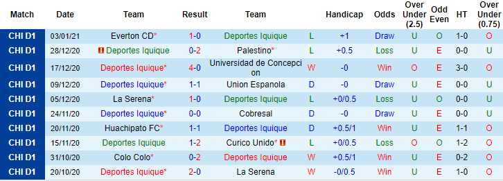 Sau 25 vòng đấu tại giải VĐQG Chile mùa này, Deportes Iquique mới giành được 27 điểm, xếp thứ 16 trên bảng xếp hạng. Trong khi đó Universidad Catolica đã giành được 52 điểm sau 25 trận, dẫn đầu cuộc đua vô địch. Thành tích đối đầu của Deportes Iquique cũng hoàn toàn lép vế so với đối thủ Universidad Catolica.