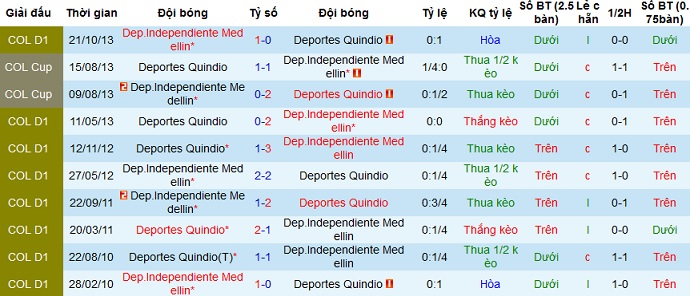 + Lịch sử đối đầu Deportes Quindío vs Independiente Medellín
