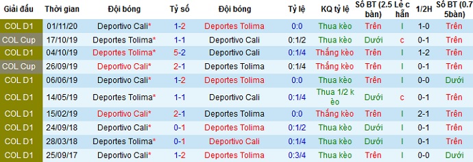+ Lịch sử đối đầu Deportes Tolima vs Deportivo Cali
