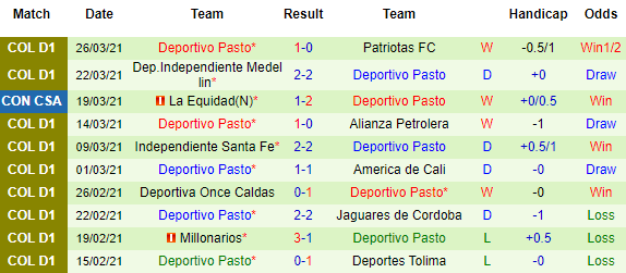 + Thống kê 10 trận gần nhất của Deportivo Pasto