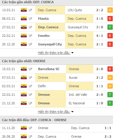 Phong độ và thống kê đối đầu gần đây Deportivo Cuenca vs Orense: