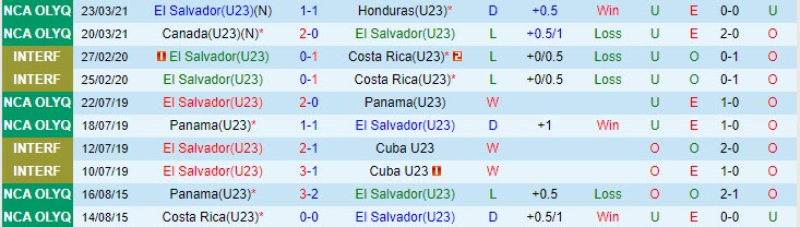 + Thống kê 10 trận gần nhất của El Salvador U23