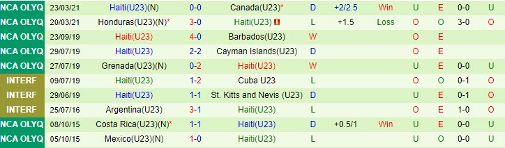 + Thống kê 10 trận gần nhất của Haiti U23