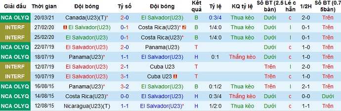 Ở vòng loại Olympic cách đây 6 năm, El Salvador U23 không thể vượt qua giai đoạn vòng bảng khi chỉ đứng áp chót ở bảng 1 với 2 điểm có được sau 3 vòng đấu, bằng điểm với đội bét bảng Nicaragua U23 nhưng hơn về hiệu số bàn thắng. Hiện tại El Salvador U23 cũng đang đứng áp chót bảng B sau lượt trận đầu tiên.