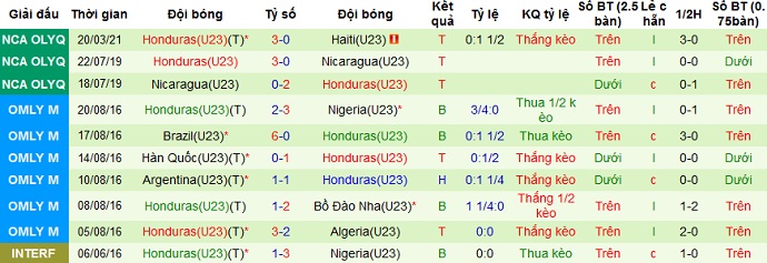 + Thống kê 10 trận gần nhất của Honduras U23