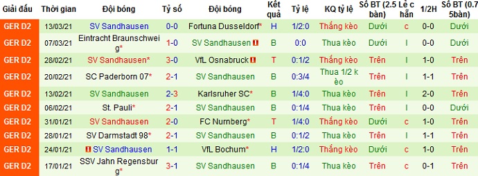 + Thống kê 10 trận gần nhất của Sandhausen