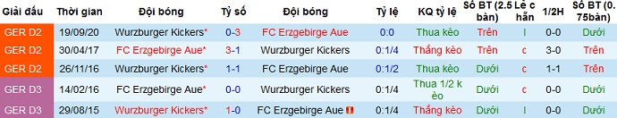 + Lịch sử đối đầu Erzgebirge Aue vs Würzburger Kickers