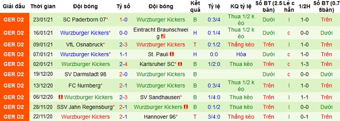 Thế nhưng trong 5 trận đấu gần đây Würzburger Kickers cũng có được 1 trận thắng, 2 trận hòa và để thua 2 trận. Trên sân khách Würzburger Kickers cũng có được 1 trận thắng, để thua 4 trận trong 5 lần du đấu gần đây.