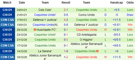 + Thống kê 10 trận gần nhất của Coquimbo Unido