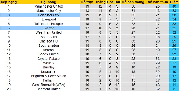 Vớ trận thua khá bẽ bàng trước West Ham ngay trong đầu năm mới, Everton đã khiến cuộc đua vào Top 4 của mình trở nên khó khăn hơn bao giờ hết. Hiện tại đội bóng đang đứng thứ 7 trên bảng xếp hạng với 32 điểm, kém đội đứng thứ tư là chính West Ham 3 điểm. Điều an ủi duy nhất với Everton là họ mới thi đấu 17 trận, so với 19-20 trận của các đội khác.