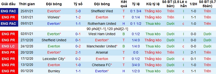 + Thống kê 10 trận gần nhất của Everton