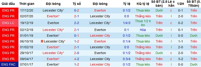 Đáng nói là trong 3 lần chạm trán gần nhất, Everton vẫn đang bất bại trước đối thủ với 2 trận thắng và 1 trận hòa. Ngoài ra đối thủ ở 5 trận gần đây của Leicester City đều không có đội nào nằm trong Top 6. Bởi vậy với việc Everton phải tiếp đón đối thủ cạnh tranh trực tiếp trong Top 4, chọn cửa dưới có lẽ vẫn hợp lý hơn cả.