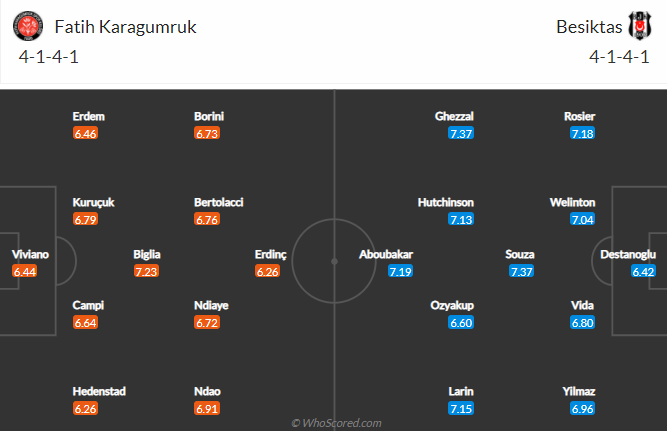 Besiktas đang thi đấu vào phom với 8 thắng, 1 hòa trong vòng 9 trận gần đây. Trận đấu sắp tới Besiktas thêm tự tin hướng tới 3 điểm tối đa vì Fatih Karagumruk khủng hoảng lực lượng. Cụ thể, Fatih Karagumruk thiếu vắng tới 7 cẩu thù vì chấn thương và thẻ phạt gồm: Zukanovic, Jorquera, Salibur, Yildirim, Roco, Balkovec và Arveladze.