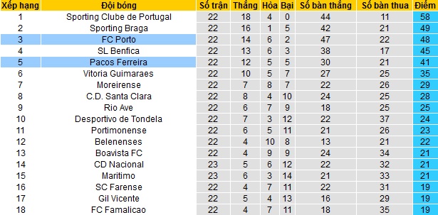 Trong khi đó Paços Ferreira đã lọt vào trong nhóm các đội có suất dự Europa League mùa sau khi đang đứng ở vị trí thứ 5 trên bảng xếp hạng. Với 41 điểm có được sau 22 vòng đấu, Paços Ferreira đang kém đội thứ tư Benfica 4 điểm nhưng nhiều hơn đội thứ 6 Vitoria Guimaraes tới 6 điểm.
