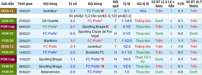 Trong lịch sử ở 5 lần chạm trán gần nhất giữa hai đội FC Porto cũng chỉ có thành tích nhỉnh hơn đôi chút với 3 trận thắng và 2 trận thua, trong đó có 2 trận thắng với cách biệt chỉ là 1 bàn. Ngoài ra Porto cũng đã không còn mạnh như mùa giải trước nên có lẽ chọn cửa dưới là hợp lý hơn.