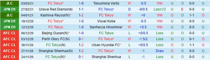 + Thống kê 10 trận gần nhất của FC Tokyo