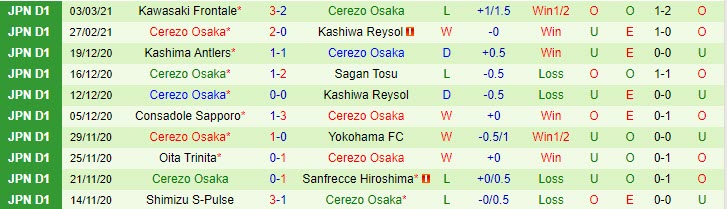 + Thống kê 10 trận gần nhất của Cerezo Osaka