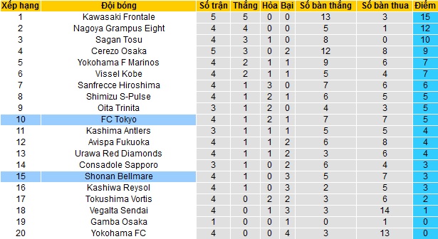 Bảng xếp hạng J-League vòng 5
