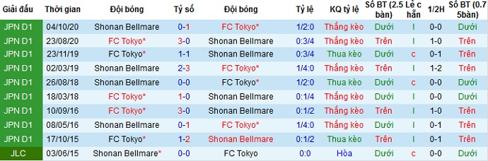 + Lịch sử đối đầu FC Tokyo vs Shonan Bellmare