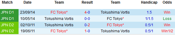 Thành tích đối đầu đang nghiêng về FC Tokyo khi họ bất bại cả 4 lần gặp nhau gần nhất với 3 chiến thắng. Đáng nói, Tokushima Vortis không có bàn thắng danh dự nào ở 4 trận nói trên.