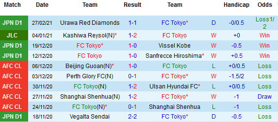 + Thống kê 10 trận gần nhất của FC Tokyo