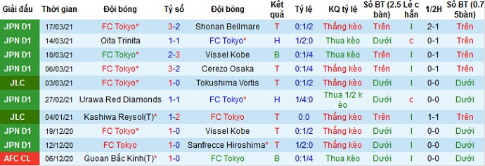 + Thống kê 10 trận gần nhất của FC Tokyo