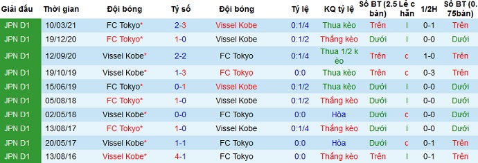 Trong 5 lần đối đầu gần nhất giữa hai đội thành tích cũng cân bằng khi mỗi đội thắng 2, hòa 1 và để thua 2. Ngoài ra Vissel Kobe đang có phong độ bất bại trên sân khách nên có lẽ chọn cửa dưới ở trận đấu này là có cơ sở và hợp lý hơn.