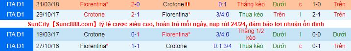 + Lịch sử đối đầu Fiorentina vs Crotone