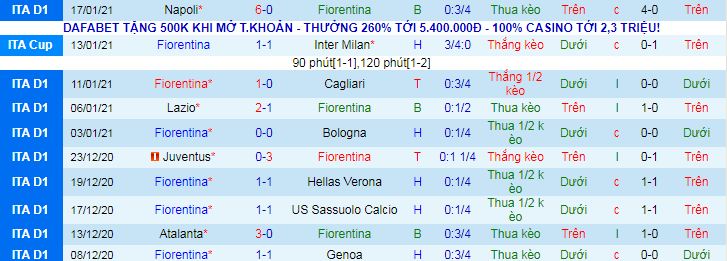 + Thống kê 10 trận gần nhất của Fiorentina