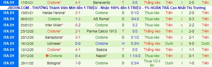Bên kia chiến tuyến, vừa chân ướt, chân ráo trở lại Serie A và ngay lập tức Crotone cảm nhận được sự khốc liệt của giải đấu cao hơn. Hiện tại, tân binh này đang đứng đội sổ với vỏn vẹn 12 điểm giành được sau 18 lượt trận đã đấu, kém vị trí an toàn gần nhất đúng 2 điểm. Đây chưa phải cách biệt quá lớn nhưng Crotone khó bứt phá khi vẫn trình diễn bộ mặt kém cỏi.