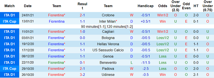 - Thống kê 10 trận gần nhất của Fiorentina