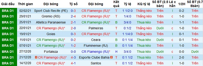 + Thống kê 10 trận gần nhất của Flamengo